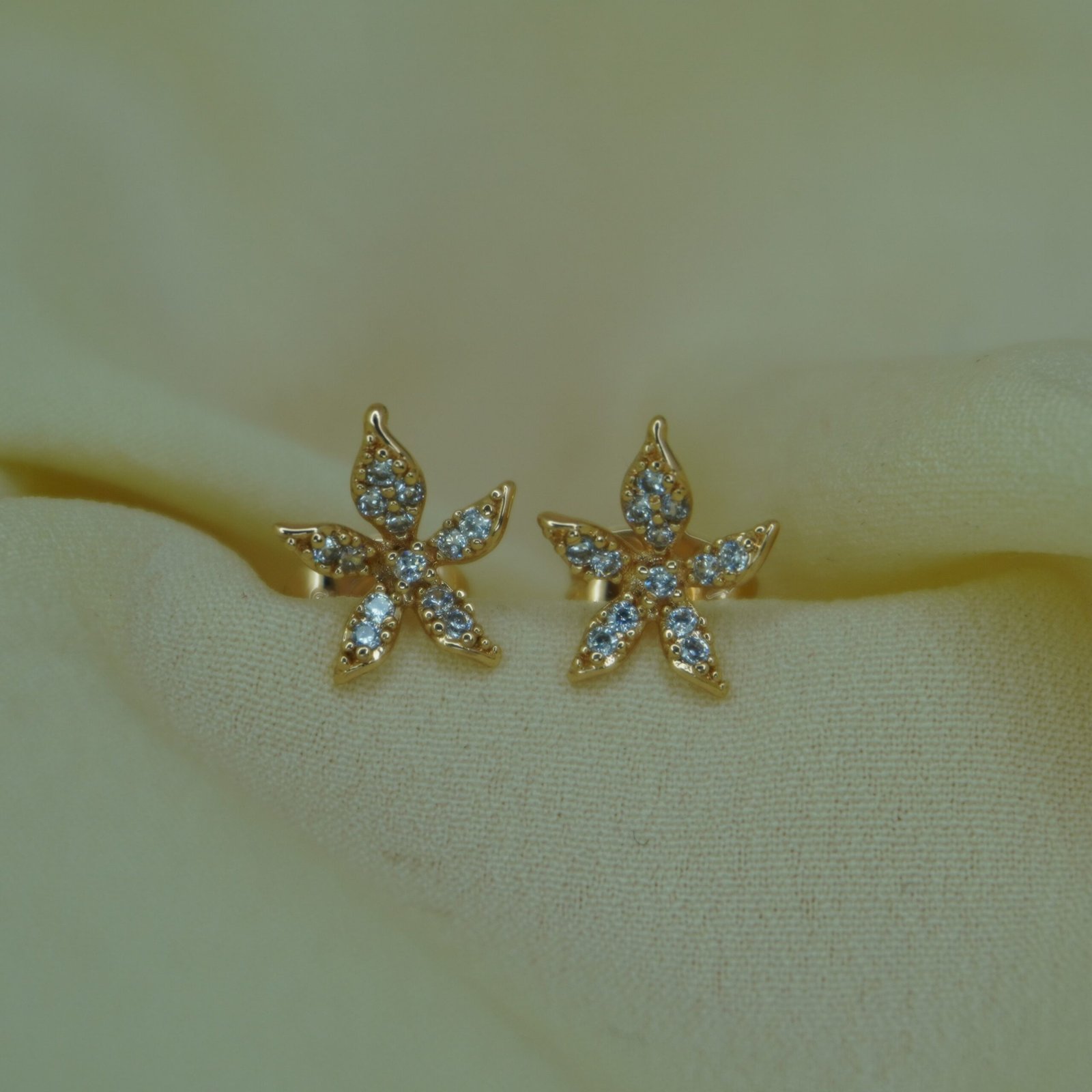 Gold-Plated Floral Stud Earrings with Cubic Zirconia – Anti-Tarnish Finish