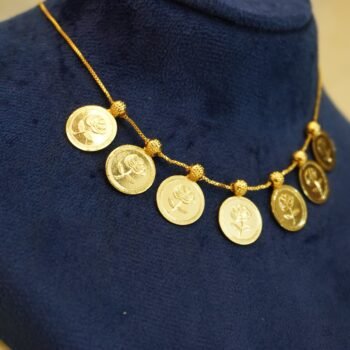 - Design: Traditional Coin Motif with Floral Accents