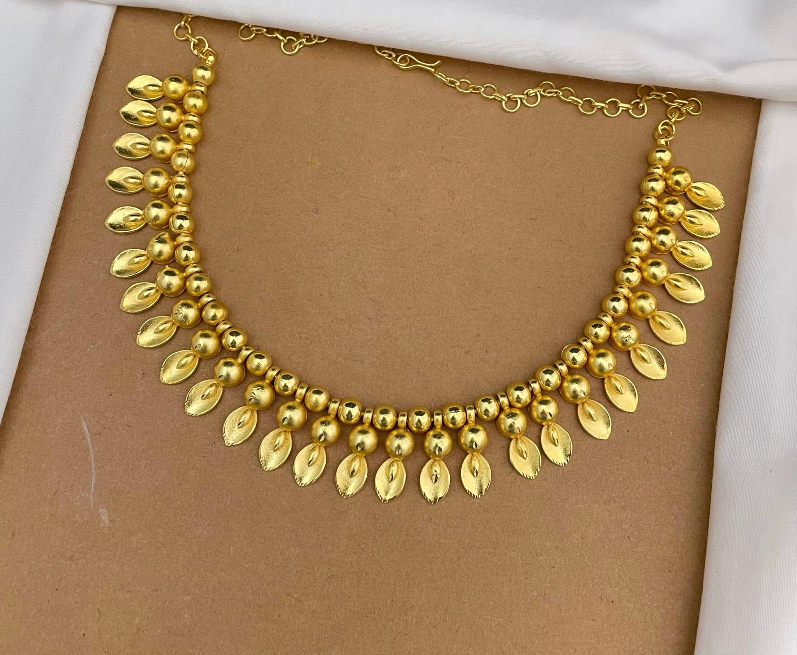- Traditional gold-tone necklace with layered beaded detailing