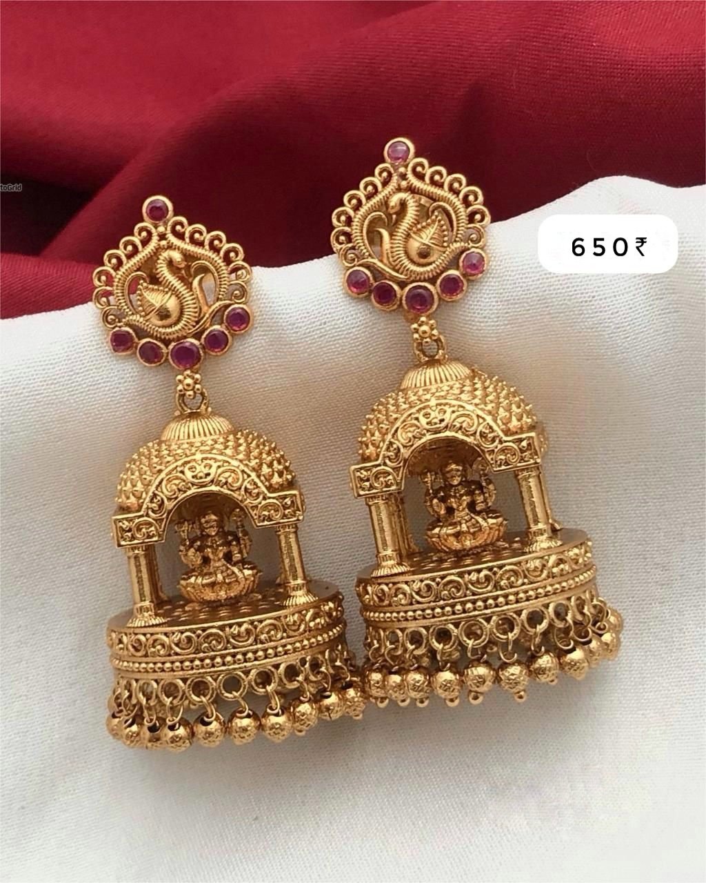 - Design: Temple-style Lakshmi jhumka